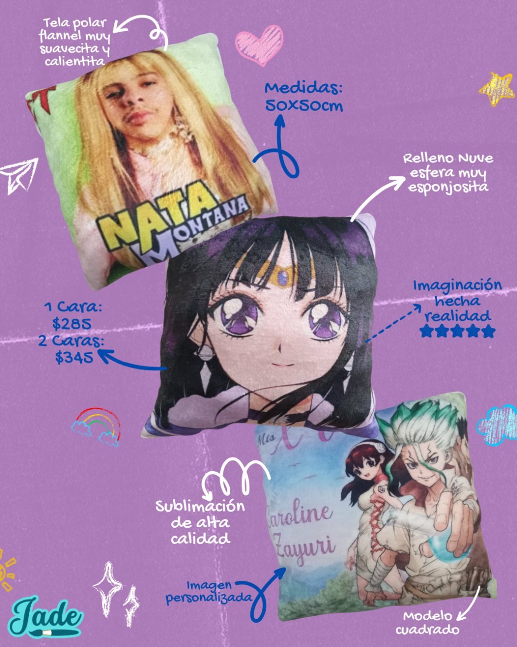 Haz que tu almohada sea verdaderamente única con imágenes personalizadas de tu caricatura, anime o película favorita. Gracias a un proceso de sublimación de alta calidad, puedes elegir diseños impresos en una o en ambas caras de la almohada. Esto garantiza colores vibrantes y detalles nítidos que dan vida a tus personajes preferidos, haciendo de este artículo un accesorio decorativo impactante y funcional.