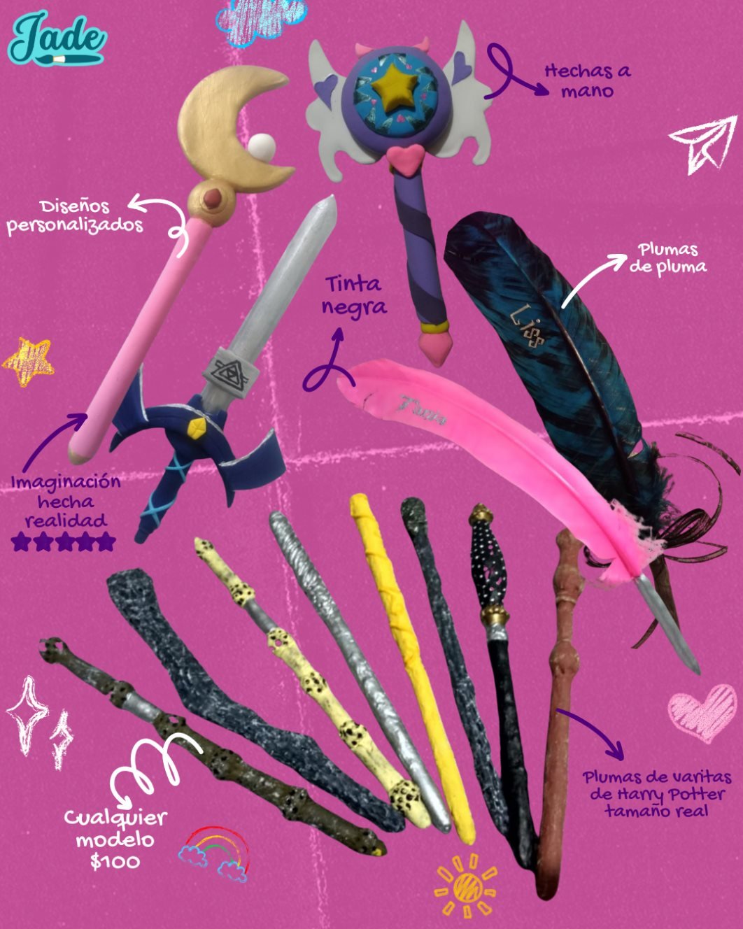 Estos bolígrafos no solo son herramientas útiles para escribir, sino piezas de diseño cuidadosamente elaboradas. La atención al detalle en cada acabado asegura que cada bolígrafo sea único. El bolígrafo de varita mágica atrae a los amantes Harry Potter, mientras que la pluma de ave conecta con quienes valoran un toque natural y artístico. Por otro lado, los diseños personalizados te permiten añadir un carácter único que se ajusta perfectamente a tu estilo y personalidad.