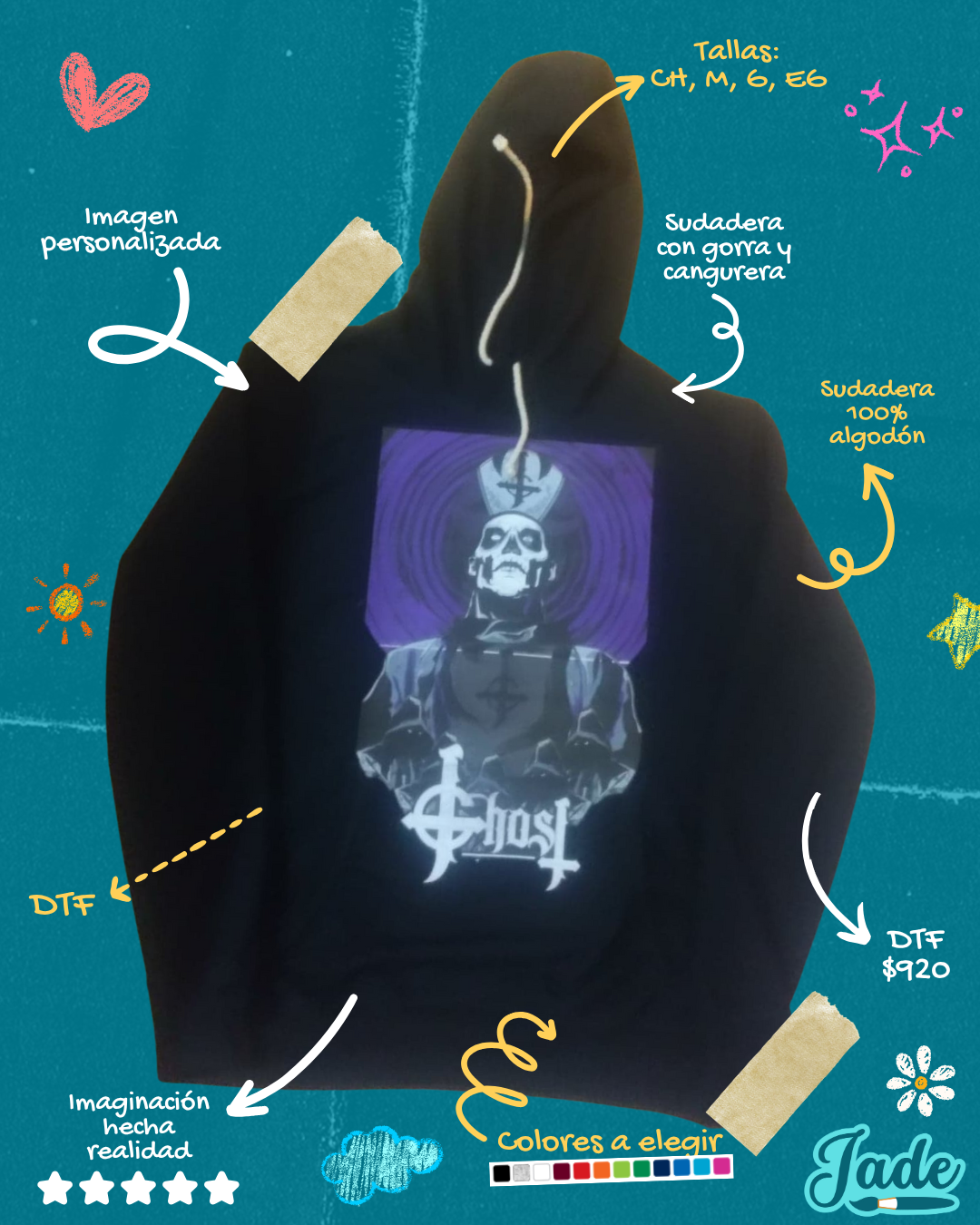 Descubre la sudadera con capucha y cangurera perfecta para ti. Confeccionada al 100% en algodón, este producto destaca no solo por la calidad de su material, sino también porque permite la personalización completa con imágenes de tu anime, caricatura o película favorita. La técnica de impresión asegura resultados vibrantes y duraderos que capturan los detalles más finos de la imagen elegida.