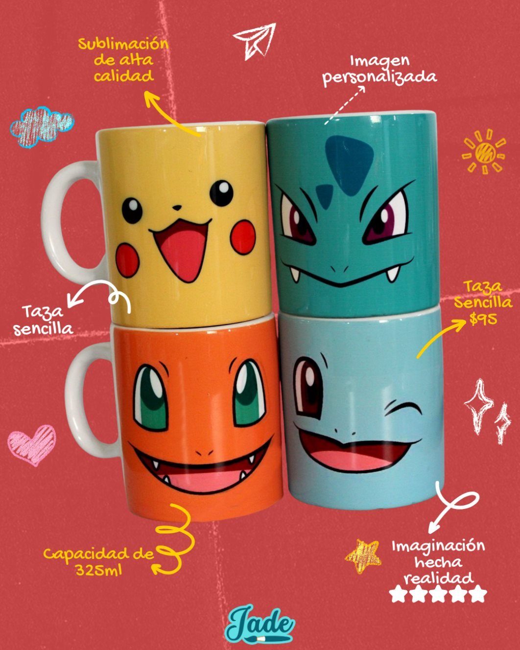 Sorprende a tus amigos y seres queridos con un diseño inspirado en sus personajes favoritos de anime, caricaturas o películas. Además, las múltiples opciones de colores y estilo hacen que cada taza se adapte perfectamente a cualquier personalidad y preferencia.
